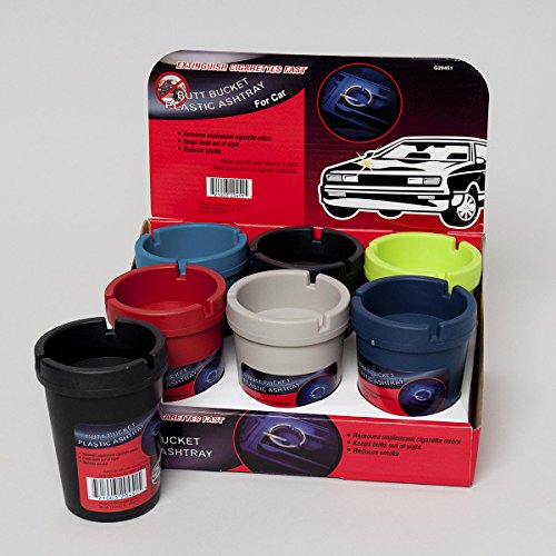 -. Feature : Includes (3) - Plastic Butt Buckets / 4-1/4" H x 3" Diameter / Assorted Colors / Removes Unpleasant Cigarette Odors / Keeps Butts out of sight - Reduces smoke