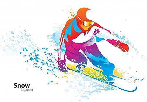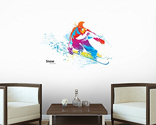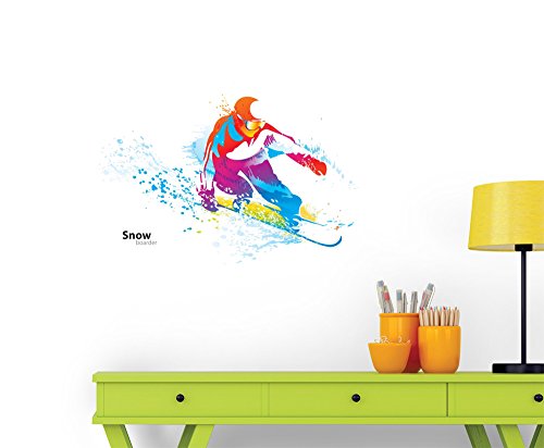 Figure Young Man Snowboarding Wall Decal by Wallmonkeys Peel and Stick Graphic (30 in W x 21 in H) WM342297
