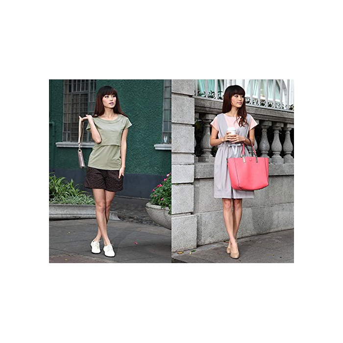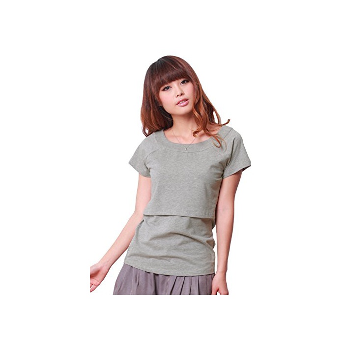 원본상품명: Sweet Mommy マタニティトップス 授乳服 授乳口付き Tシャツ デコルテすっきり ストレッチコットン 大きいサイズ 小さいサイズ スリムフィット 春 夏 半袖 産前産後/?グレ?/L