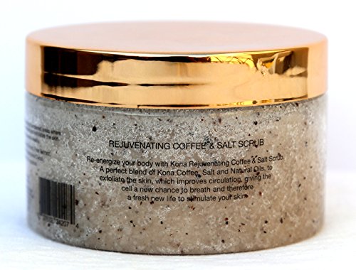 - Re-energize your body with Kona Rejuvenating Coffee Salt Scrub. A perfect blend of Kona coffee, salt, and natural oils to exfoliate the skin, which improves circulation, giving cells a new chance to breathe. Consider it fresh, new life to stimulate your skin.