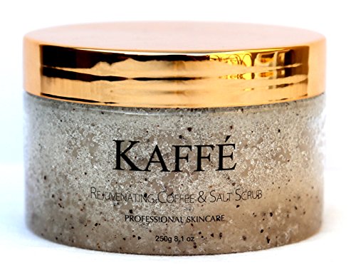Kaffé 100% All Natural Coffee & Salt Scrub Infused with 100% Organic Kona Coffee for Body, Skin Nourishment, Cleansing, & Acne Relief