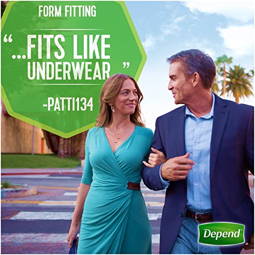 Reclaim and reconnect with what matters most in your life in the new and improved Depend FIT-FLEX Incontinence Underwear for Women. Now with our fastest absorbing material, Depend incontinence underwear feature Confidence Core Technology to instantly absorb wetness for dry, comfortable protection. Drawing wetness away from the skin, the thin, contoured pad is made of super-absorbent materials that lock in urine and odors. Perfect for maternity panties or postpartum underwear, the slip-on style has all-around leg elastics for a close-to-body, discreet fit that's unlike bulky adult diapers. Depend FIT-FLEX is designed to fit the shape of a woman and is more flexible† to move with you. Now in a feminine, neutral tan color, Depend incontinence underwear for women are latex-free, lotion-free and fragrance-free. Are you new to Depend? Start with Depend Fit-Flex for Women in moderate absorbency or Depend Silhouette Active Fit in moderate absorbency. Depend for women are eligible for purchase with a Flexible Spending Account (FSA) ? applicable in the U.S. only. Size small/medium fits women with a 28-40-inch waist and who weigh 115-190 lbs. †vs. leading bargain brand ? 0 |