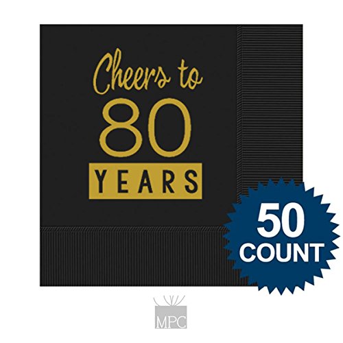 80th Birthday Black Cocktail Napkins - Cheers to 80 Years (50 napkins)