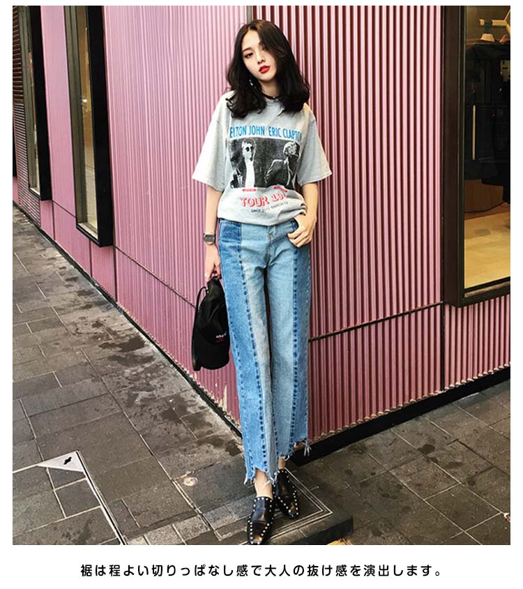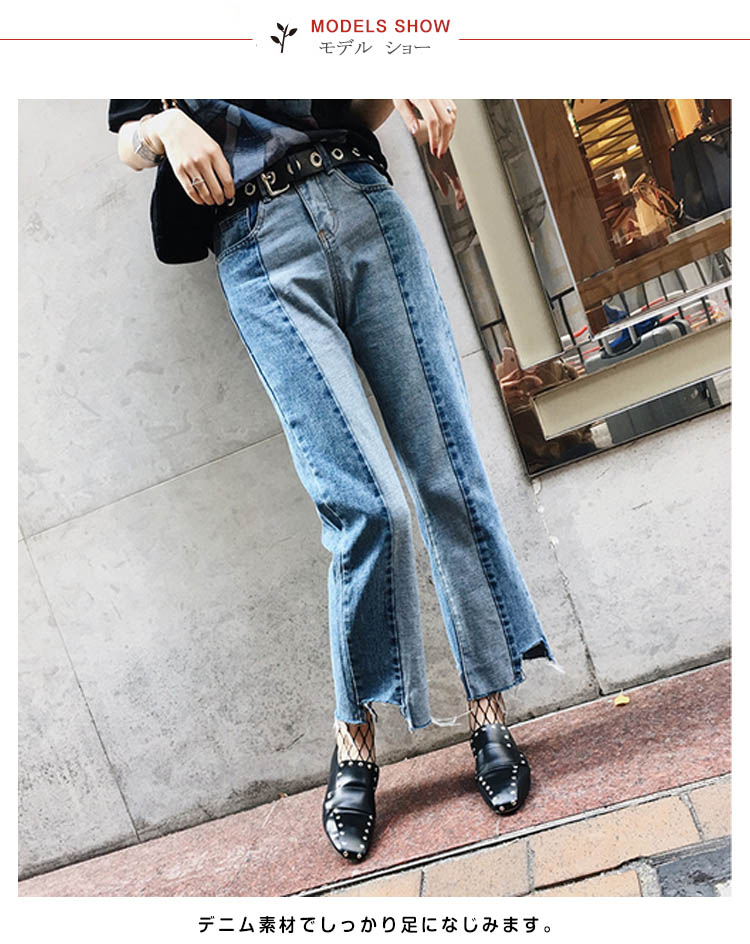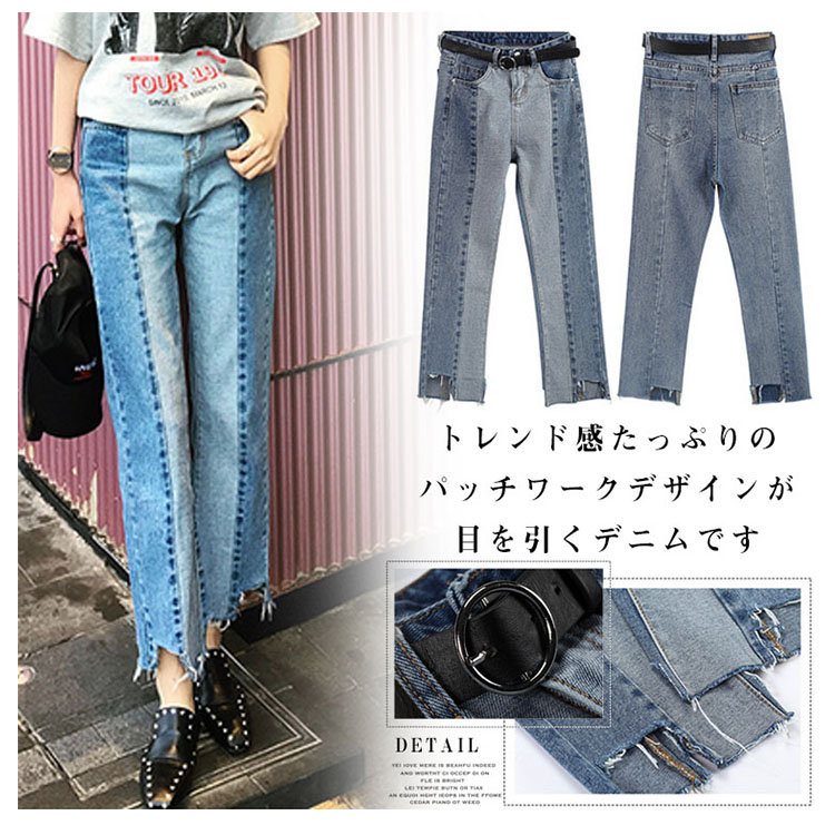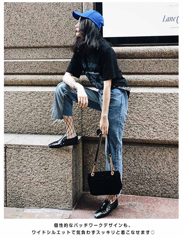 | トレンド感たっぷりのパッチワークデザインが目を引くデニムです。デニム素材でしっかり足になじみます。個性的なパッチワークデザインも、ワイドシルエットで気負わずスッキリと着こなせます◎裾は程よい切りっぱなし感で大人の抜け感を演出します。オールシーズン使えるデニムは、カジュアル、フェミニンと様々なコーデにハマる万能アイテム! | |