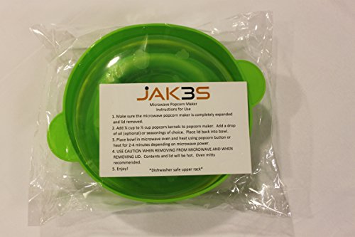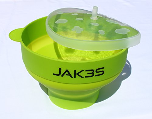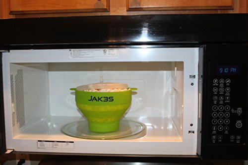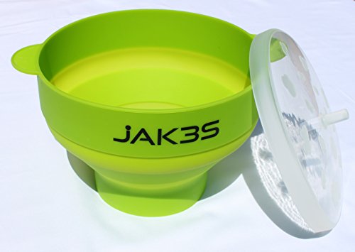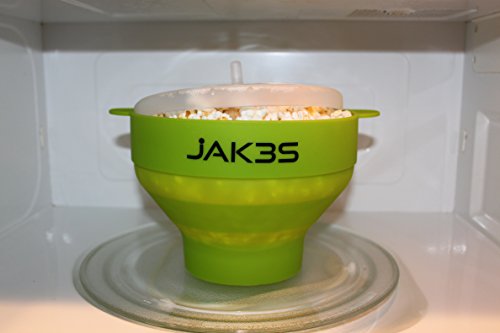 Jak3s Microwave Popcorn Popper Bowl for the Home.Safe alternative to Microwave Popcorn Bags & Air Poppers. BPA Free Silicone. Requires No Oil. Collapsible for Easy Storage. Convenient Handles and Lid.