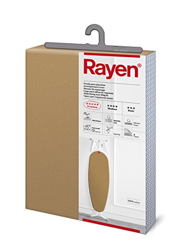 -. Binding : Kitchen -. Brand : RAYEN -. Color : Golden -. EAN : 8412955200831 -. Feature : It is Made in Cotton fabric with foam and felt pad base and has an external layer with aluminum coating / It is suitable for universal ironing boards up to 49, 6 x 15, 7 inches / It has a metallic finish that reflects heat twice more effectively -. Label : Rayen -. Manufacturer : Rayen -. Model : 6143.02 -. MPN : 6143.02 -. NumberOfItems : 1 -. PackageQuantity : 1 -. PartNumber : 6143.02 -. ProductGroup : Home -. ProductTypeName : HOME -. Publisher : Rayen -. Studio : Rayen -. Title : Rayen Ironing Board Cover, Golden