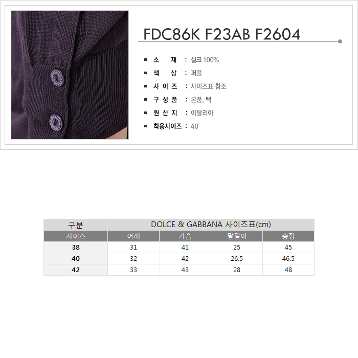 원산지/제조원 이탈리아 / 돌체앤가바나
