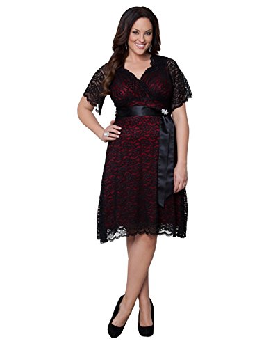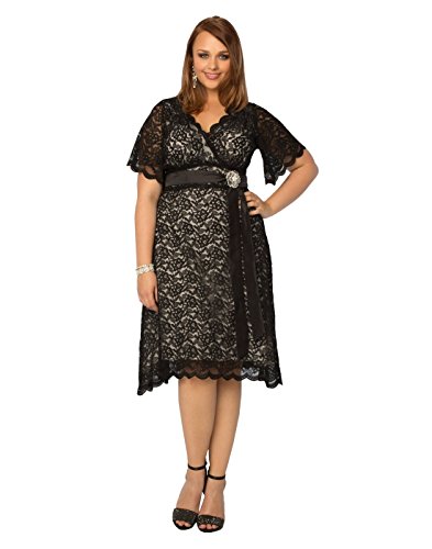 For this lace confection of a frock, we channeled the forties for romantic inspiration of a time past. Reminiscent of an old Hollywood heroine, this dress embodies retro styling with a swingy skirt and removable satin sash. A vintage-inspired brooch adds just a hint of sparkle. Blending classic and contemporary times, this stretch scalloped lace gently skims over your curves for a delightfully comfortable fit. A surplice neckline and just-the-right-length sleeves gives it just the easy flattering touches it needs. Inspired by the past but made for our muse...the modern woman. Lace: 62% Nylon/ 27% Rayon/ 11% Spandex, Lining: 100% Polyester. Dry clean only. Made with love in the U.S.A.Feature