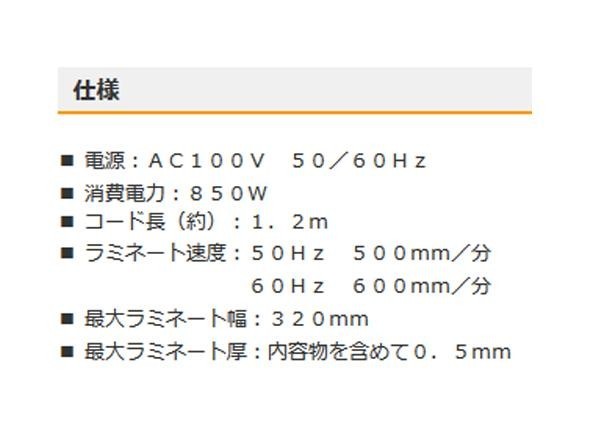 fk094igrjs4本ローラーで、A3サイズ用紙1枚が約30秒で高速ラミネート。 製造国:中国 素材・材質:ABS 商品サイズ:(約)幅490×奥行150×高さ105mm 重量:(約)3100g 付属品:取扱説明書(保証書付)※保証期間:お買い上げ後1年間※お届け地域により、別途運賃がかかる場合やお届けできない場合がございますので、お問い合わせ下さい。