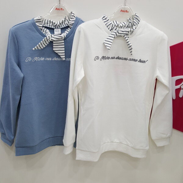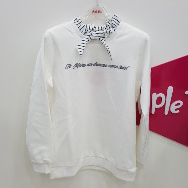 카라장식 맨투맨티셔츠 리본장식은 주름상태에 따라서 모양이 잡힙니다.(틀어졌다고 불량이 아닙니다.)