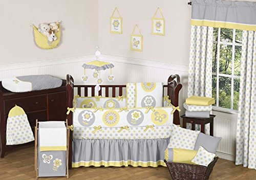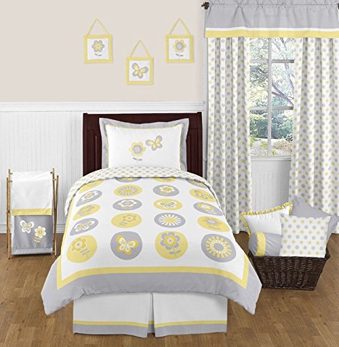 Sweet Jojo Designs Yellow, Gray and White Mod Garden Girls Window Valance