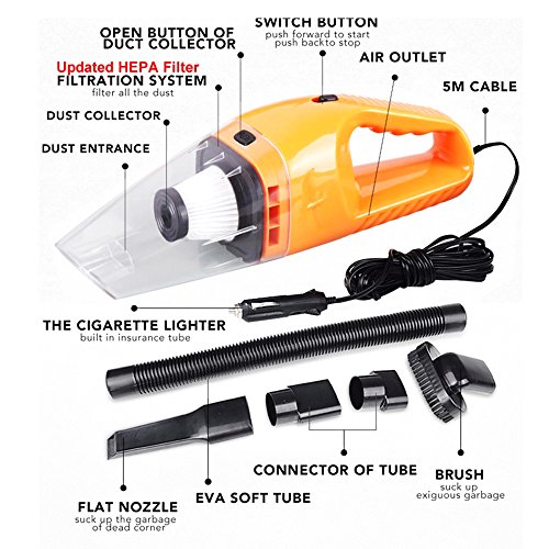 COSSCCI Car Vacuum Cleaner High Power, DC 12V ,120W Portable Lightweight Powerful Handheld Wet & Dry Auto Vacuum Cleaner Dustbuster with 16.4 FT(5M) Power Cord (Orange)