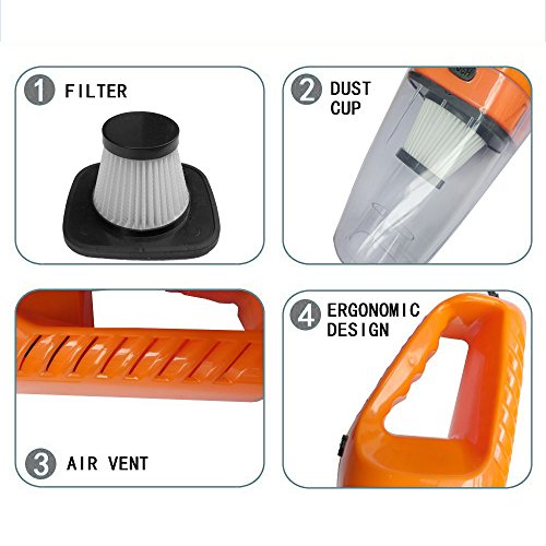 HIGH POWER: 120W DC 12V suction, sucking up wet and dry spills in seconds. Ideal tool to clean crumbs, dog hair, sand, dust, dirt, cigarette ash and more other small things in cars, trucks, vans, pickups and caravans.