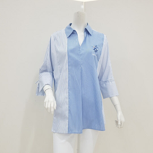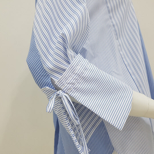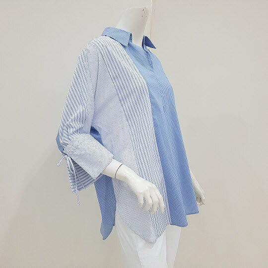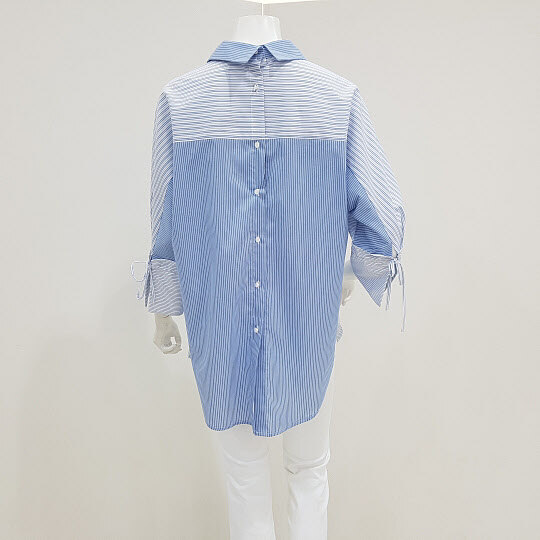 The Izzat, 핀스트라이프 패턴으로 캐주얼한 스타일 감각을 연출하는 롱블라우스입니다