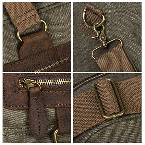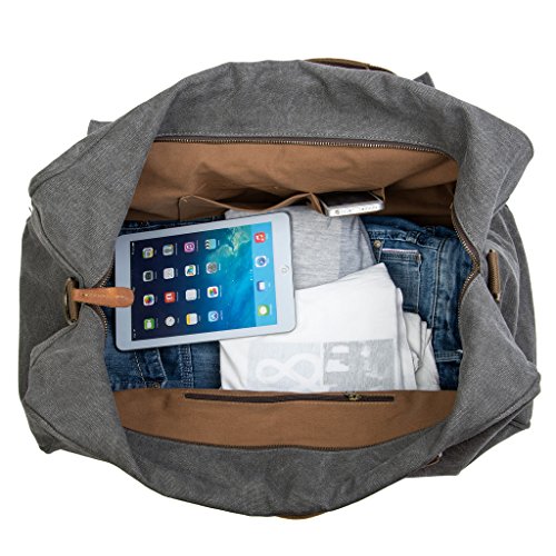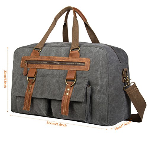 -. Feature : Material:Cotton Canvas and Leather / Genuine leather decoration,Zipper closure / Dimensions: 13"H *21.6"L *7.5"W / Perfect for trips, vacation, travel and sport. / Removable and adjustable cross body strap