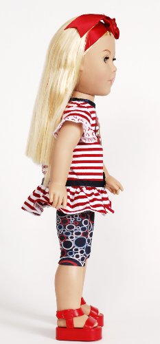 - Feature : 18" doll has blonde hair / She is wearing a cute striped ruffled dress / Part of the Favorite Friends collection