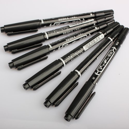 Pens have tips at both ends; a regular tip (slightly finer than a marker), and an ultra-fine tip for detail work.