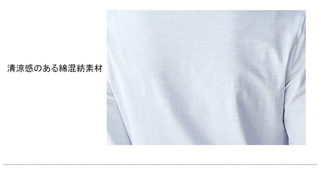サラッとした清涼感のある綿混紡生地を使用した七分袖Tシャツ。 | |