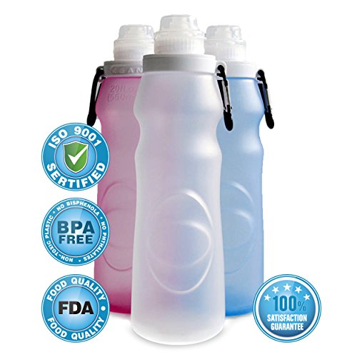- Feature : Tough, Durable, virtually unbreakable 20 oz bottle that is collapsible when it's not filled - So you can fill your backpack or travel bag with other essentials. / Wide top makes it easy to put ice in bottle and pop up nozzle makes it easy for use with one hand! / Easy to clean. Top rack diswasher safe. You can use it in microwave or freezer. Made of 100% food grade silicone. / Our bottle is safe for you and the earth; BPA free, Microbrial resistant, non toxic and recyclable. No more bad smells or after-taste. / If you like Camelbak or Vapur bottles, you'll love this Squeezit!