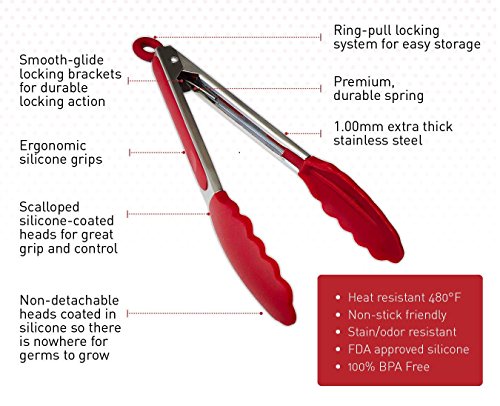 ?Benefits Features With scalloped steel heads coated in silicone,Uigio tongs with silicone tips are firm and angled to offer amazing grip and control.