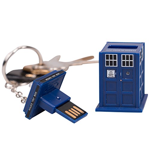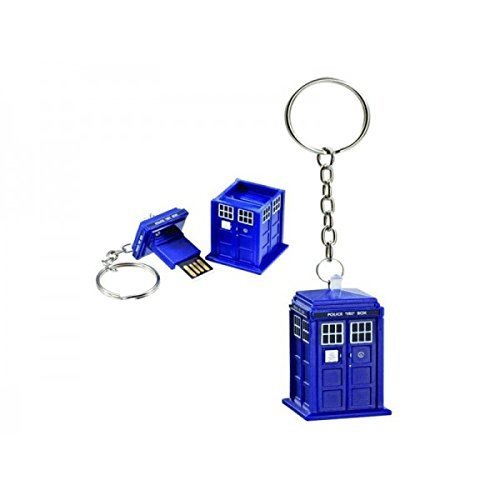 Doctor Who Memory Stick - TARDIS 4GB USB Key Chain with Flashing Blue LED Light - Be a Time Lord and a Memory Lord with this cool Dr Who TARDIS 4GB USB Memory Stick. Never again will you be wishing you had a floppy disk to save your precious documents! Move files, pictures, music and applications from one PC or Mac to another with this USB, Simply plug your USB into the USB port, dragging and dropping files to and from it as you go. The Doctor Who TARDIS Memory Stick has a capacity of 4 GB (gigabytes) and features a blue LED light that illuminates when the memory stick is plugged into a USB slot. The top also doubles as a key ring so it can journey with you on all of your adventures. This item makes a great gift for all your time-traveling, globetrotting friends!Feature