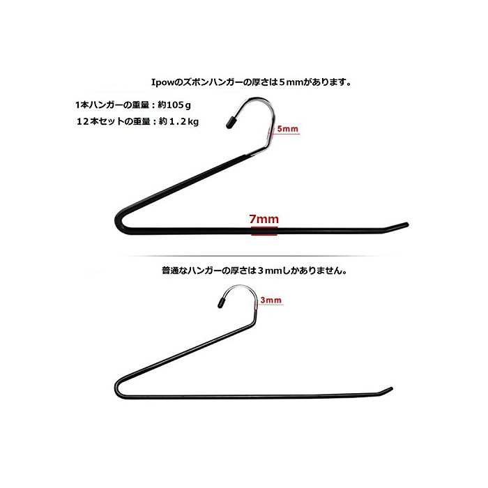원본상품명: IPOW すべり落ちないハンガ? ズボン スト?ル用 12本組 ブラック