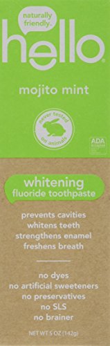 ReleaseDate : 2017-04-12 Studio : Hello Products LLC Publisher : Hello Products LLC Binding : Health and Beauty Product Description Say hello to naturally friendly mojito mint whitening fluoride toothpaste. It's thoughtfully formulated with high quality ingredients like xylitol, stevia and a silica blend that gently whitens teeth. It's an all-access VIP party for your teeth and taste buds that's ADA accepted and clinically proven to prevent cavities and strengthen enamel and bonus, it's free from artificial sweeteners, artificial flavors, dyes, preservatives, microbeads, triclosan, parabens, and gluten and if that weren't enough, hello is also vegan, never tested on animals (Leaping Bunny Certified and PETA recognized) and made in the good ol' US of A. Why mojito mint toothpaste you ask? Because let's face it, mojitos are just awesome. 0