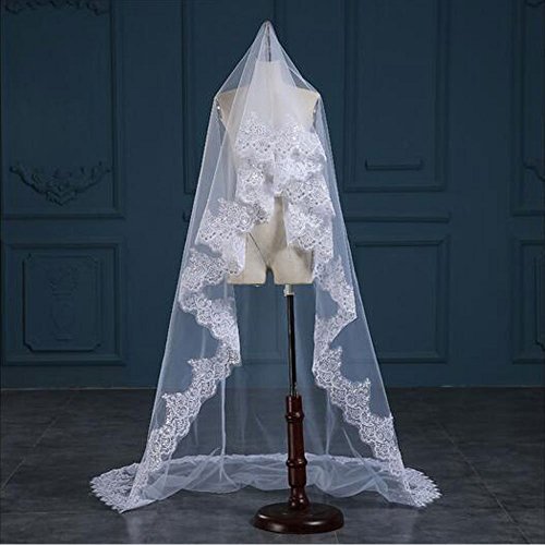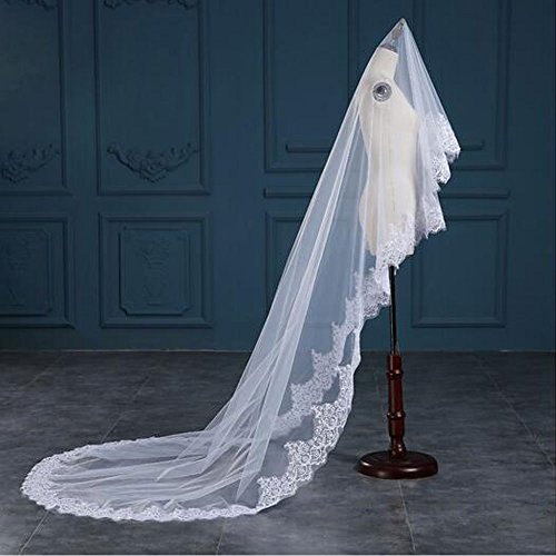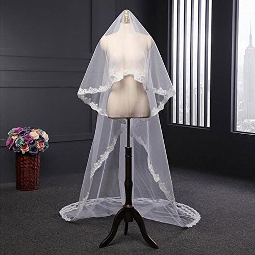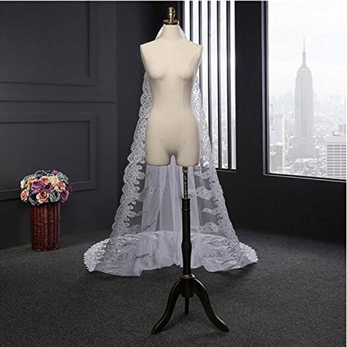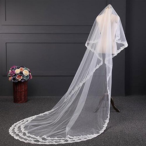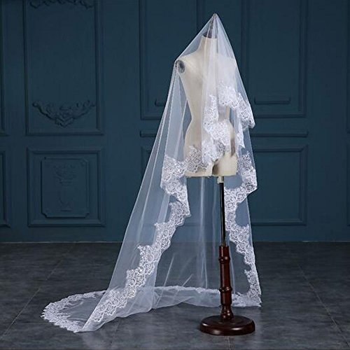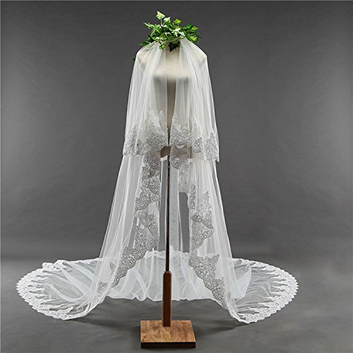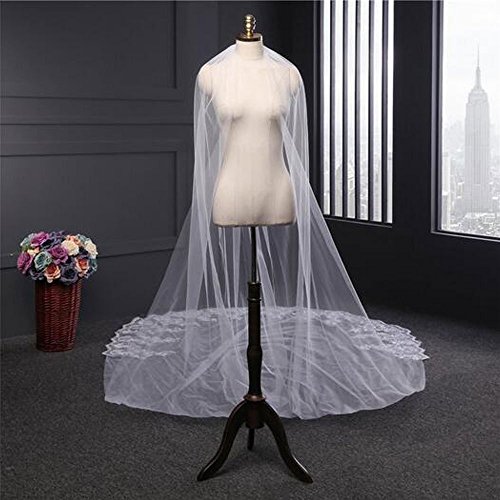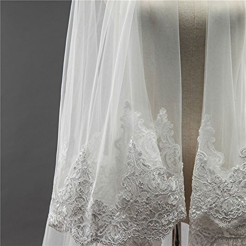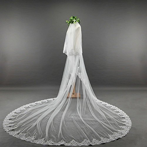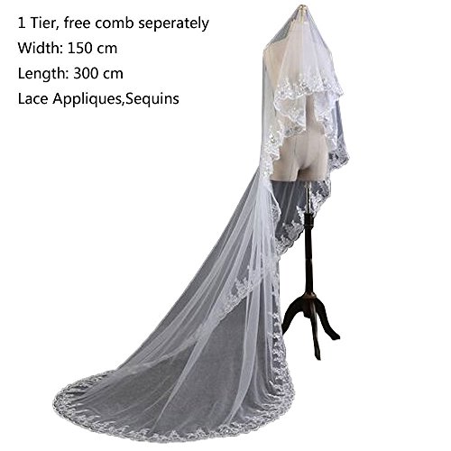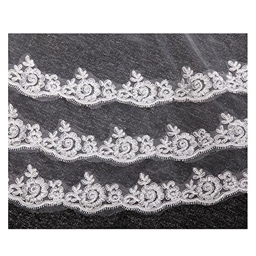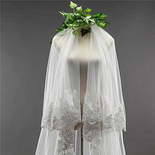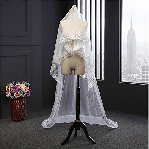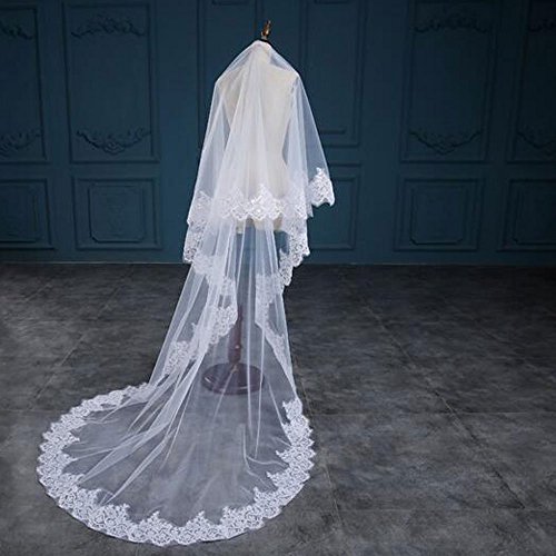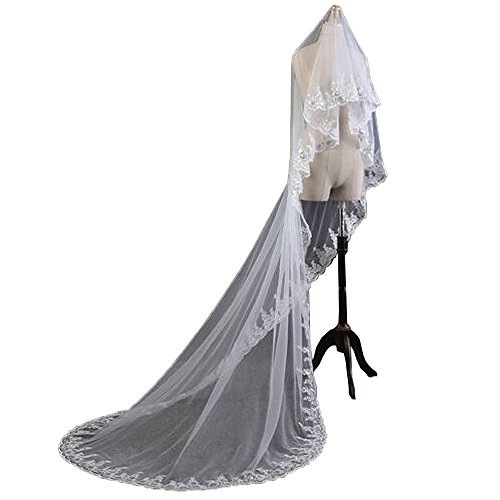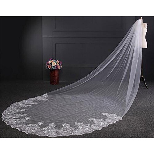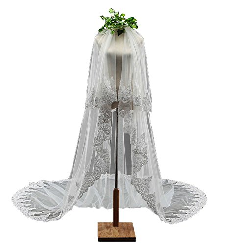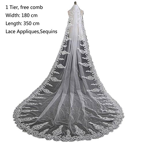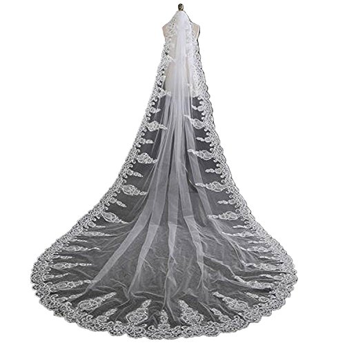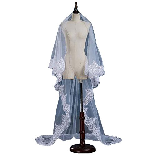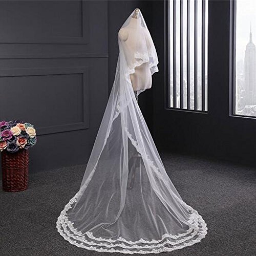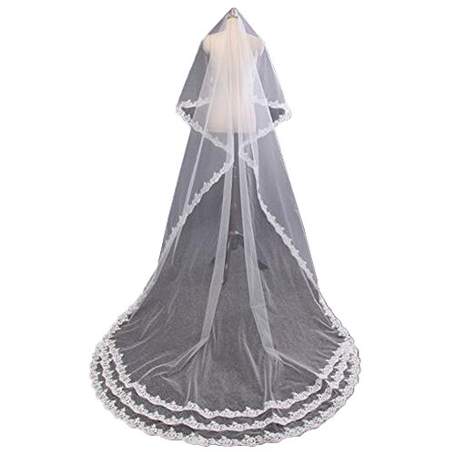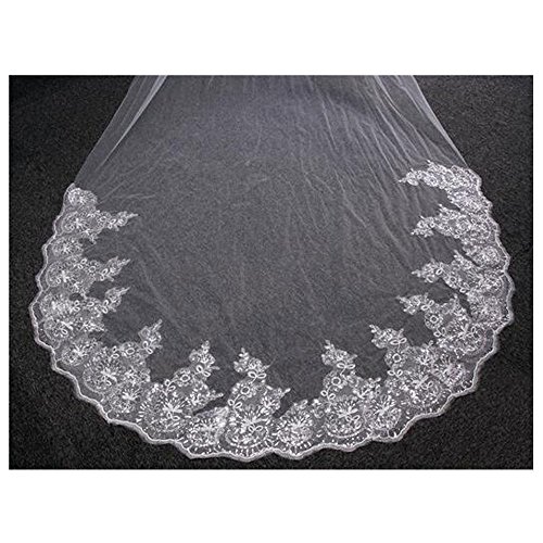 | (Dannifore)/Accessories/Scarves/DIRECT FROM USA/Dannifore White/Ivory Cathedral Bridal Wedding Veils Long with Comb Lace Appliques |