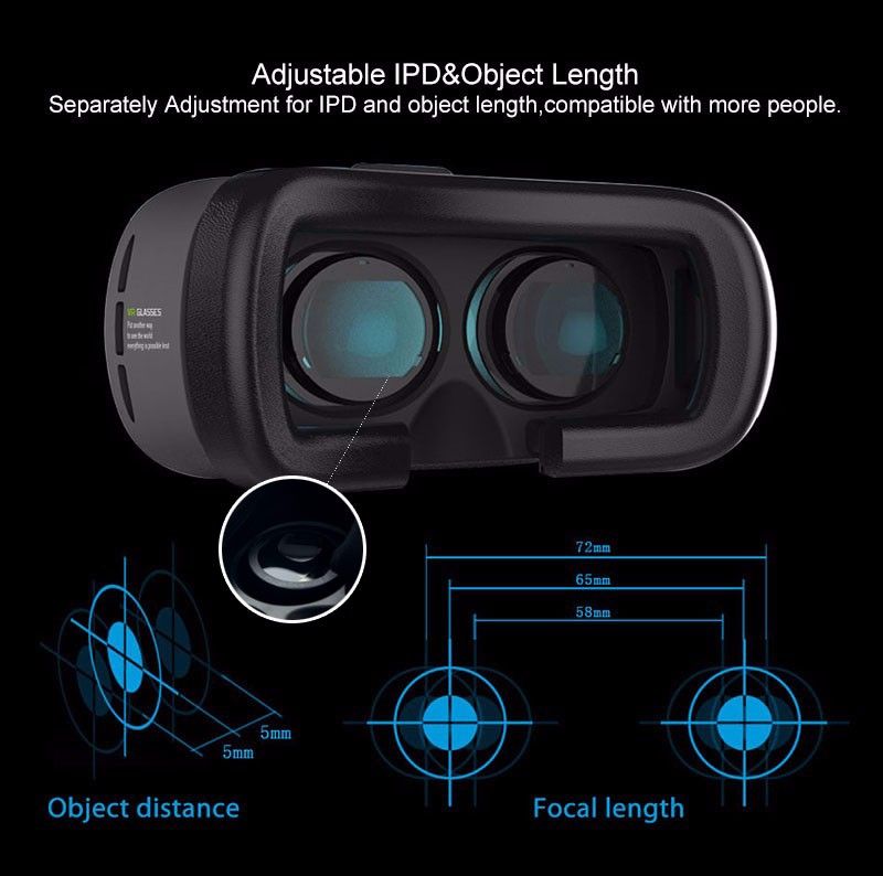 You can slightly adjust the position of the spherical resin lens through moving, the button on the top of the VR BOX 3D Glasses.