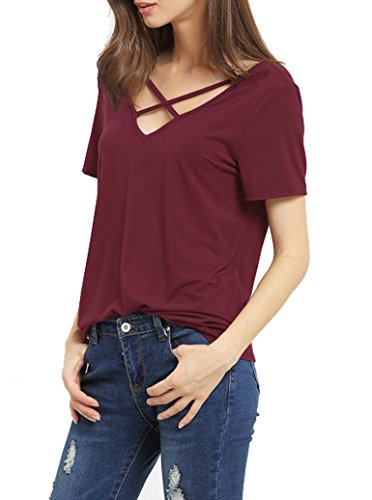 -. Feature : Sizes:You May CHOOSE THE SIZE AS YOU USUALLY WEAR,IF NOT SURE ,PLS CHOOSE ONE SIZE UP / Material: Cotton Blend Frabic , Soft and Comfortable / Sexy Criss Cross Design At The Front and V-neck Cut at The back / Summer Fashion Street and Casual Top, Great to Wear For Daily ,Work,Vacation ,For Women and Juniors / Romastory Owns Its Own Trademarks.The Serial Number:86805889. The Package Contains Romastory Tag