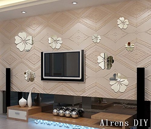 Alrens_DIY(TM)25pcs=5 Flowers Unique Gifts Crystal Reflective DIY Mirror Effect 3D Wall Stickers Home Decoration Bathroom Decor