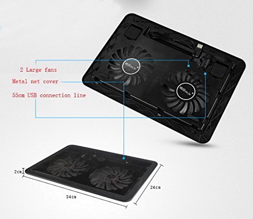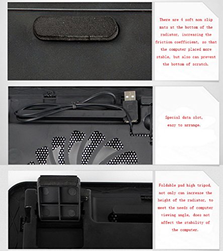 -. Feature : Hidden double anti-skid baffle, which can avoid the problem of notebook sliding in the process of playing games, It can be folded, can be hidden, you choose; Hidden USB line, easy to take and carry, stylish atmosphere, super tensile wire art. / Laptop Cooling Pad with a metal mesh surface provides with a wear-resisting and stable laptop carrying surface and avoids overheating during long periods of gaming or browsing online. / Super high speed, super wind, with two high strength core motor unique turbine color fan, strong wind, heat efficient instantaneous, no blind area no dead angle. Plug and Play: Non-slip mat design, the front baffle design, plug and play, no external power supply is needed, no software installation is required. / The bottom of the radiator is provided with a ventilating fan, and a plurality of fan-shaped air holes are designed, which makes the air contact with the bottom of the computer to take away the heat and accelerate the circulation of the air. / Size:34*24*2cm/13.39*9.45*0.79inch(L*W*H); Portable, light weight, and Unique USB location allowing you to protect your investment wherever you go.