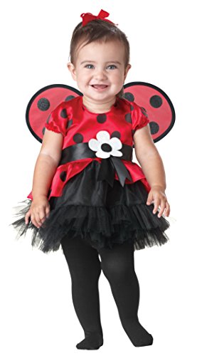 -. Brand : SEASONS -. Color : Red and black -. Department : baby-girls -. Feature : Includes: dress and wings,NO sock / Size : toddlers 12-18 months US (see size chart next to photo) / Material:dress: 100% polyester ; wings: 90% polyester, 10% PVC / Embellishment:Satin belt with felt flower, wings with glitter print / Perfect for Halloween, role play, cos play, birthday and more;Delivered by USPS within 8-12 business days -. ProductGroup : Apparel -. ProductTypeName : BABY_COSTUME -. Size : One size -. Title : SEASONS DIRECT Halloween Girl's Tiny Ladybug Costume Includes Dress and Wings -. UPC : 052289502362