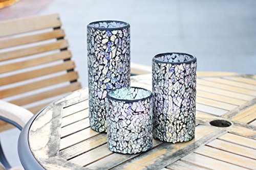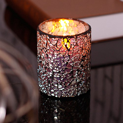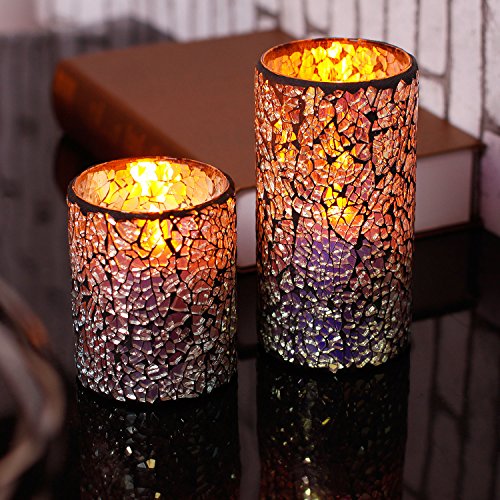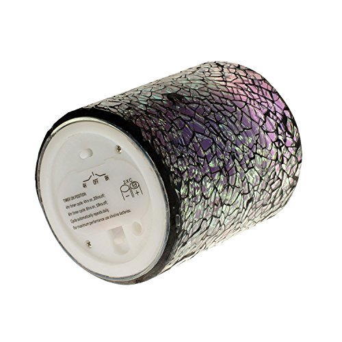 SPECIFICATIONS - -Candle size 3 inches Diam x 4 inches Height. Package of 1. Candles run on 2x C batteries (not included) .Features 4H-Off-8H switch. Made with real high quality wax and mosaic glass.