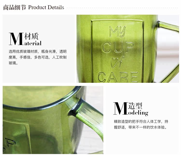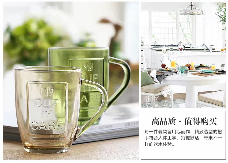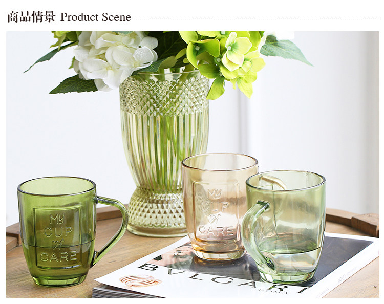 创意复古透明玻璃杯马克杯办公室冷水杯茶杯 多色可选