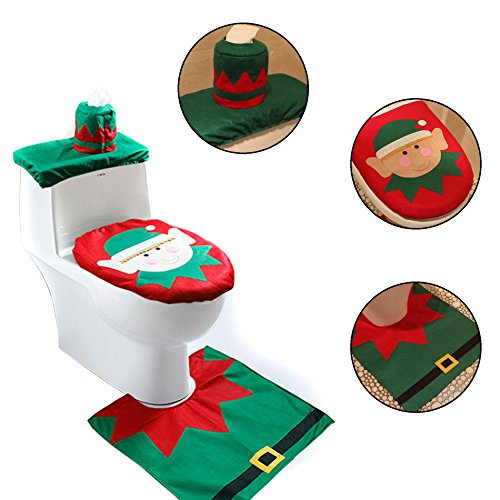 -. Brand : IDS Home -. Color : Multi-colored -. EAN : 4894425399964 -. Feature : This Christmas elf toilet seat cover set is made of non-woven fabric and it is soft, warm, reusable and washable / This toilet seat cover set includes toilet cover with cute fairy, floor mat design as a clothes and a tank cover which design as a hat with characteristic of retractable / Cute smiling face of fairy can decorate your bathroom, add christmas atmosphere and ambience and bring you a good mood / This is a good choice to your bathroom -. Label : IDS Home -. Manufacturer : IDS Home -. MPN : #17606#{3} -. PartNumber : #17606#{3} -. ProductGroup : Home -. ProductTypeName : HOME_BED_AND_BATH -. Publisher : IDS Home -. Studio : IDS Home -. Title : Christmas Elf Santa Toilet Seat Cover and Rug Set Floor Mat Tissue Box Bathroom Decoration