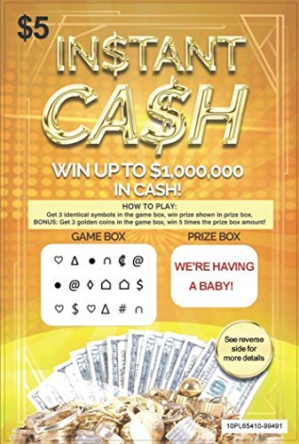 Studio : Easyshop-123 Publisher : Easyshop-123 Binding : Health and Beauty Product Description Looking for the perfect way to announce your pregnancy? ? We understand that it can get frustrating thinking of unique ideas... We have therefore created the PERFECT surprise idea, in the form of a fake lottery card! You will have your player so surprised, and both of you will always remember this important moment! ? The game is very simple. In the left box, underneath the gray scratch area, there is a series of random symbols. In order to win, player must identify 3 of the same symbols. Once 3 of the same symbols are identified, player then scratches the prize box to the right, where it will state "WE'RE HAVING A BABY!". Of course, every lottery card is a winner, with 3 matching heart symbols. ? Card measures 4" x 6", for the perfect authentic looking size! Cards are fake and are only a replica of lottery cards, and have no redemption value. For fun purposes only! ? If you are to have any questions or concerns, please do not hesitate to message us, and we will gladly help you right away! ? Many customers have successfully announced with this fun game, and were very happy with the results! This is the perfect idea for a pregnancy announcement, and you will definitely be truly satisfied! ? Also great for those who enjoy playing lottery games! ? Hope you enjoy, and have a healthy pregnancy!! 0