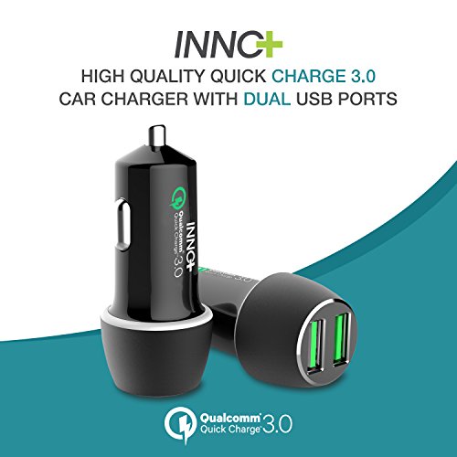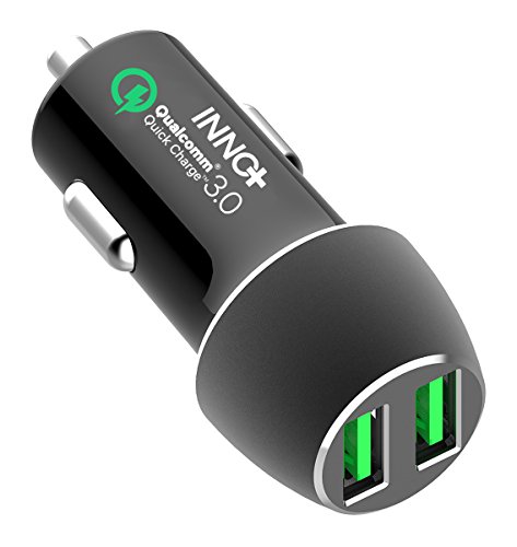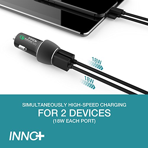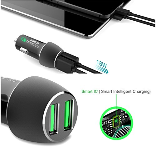 Dual USB 3.0 Quick Charge Car Charger-12V 36W Rapid Charging Qualcomm Certified with Soft-LED Lightning for Universal iOS/Android Non-Fast Chargeable Device-iPhone/Samsung Galaxy/Nexus/HTC/LG Adapter