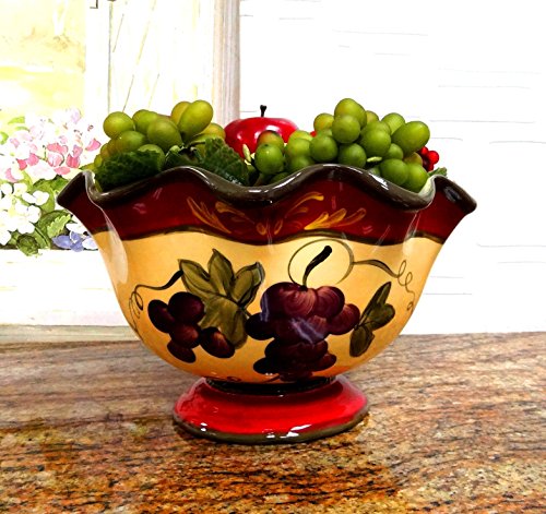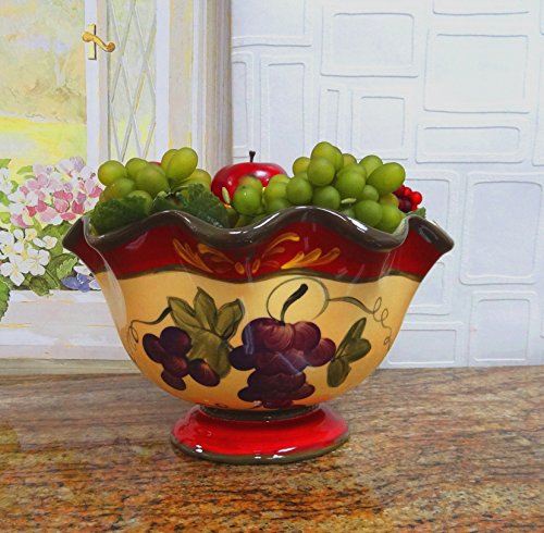 Tuscany Garden Collection, Ceramic Grapes Pedestal Fruit Bowl, 84081 by ACK