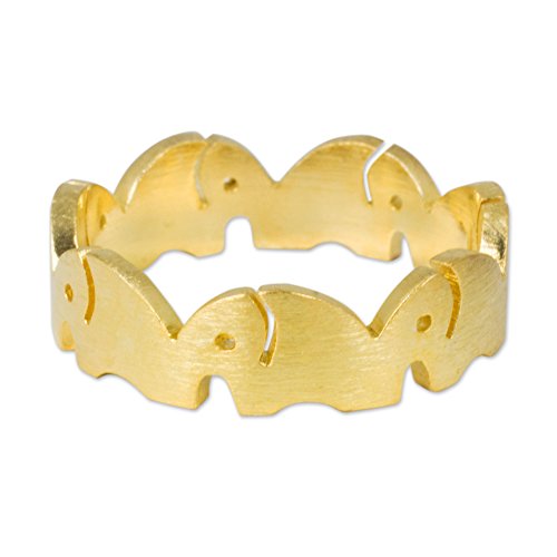 About this item: Gold vermeil elephants parade in a circle shaping this lovely ring. Thailand's Jantana designs the ring, which is crafted with a brushed satin finish on the exterior.