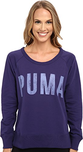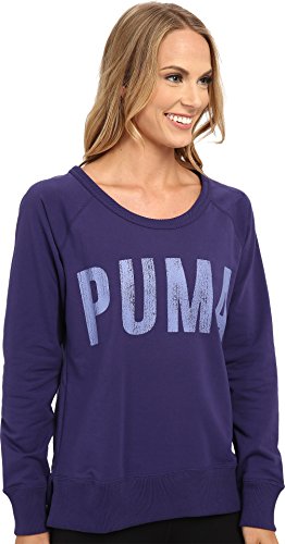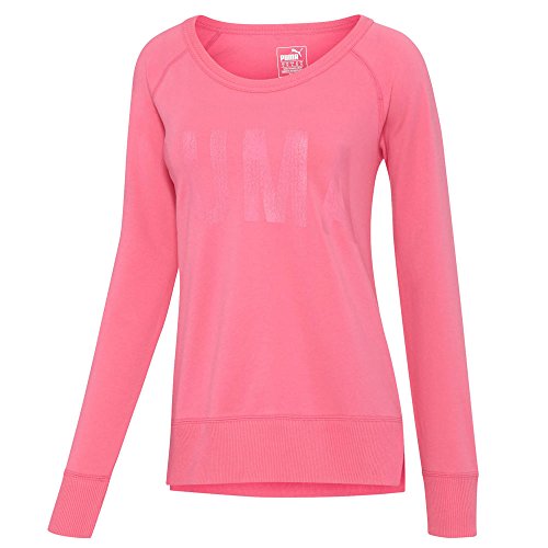 Boat neck raglan sleeve sweat featuring puma graphic print on chest. Rib knit collar and contrast neck binding. Clean finished rib knit cuffs and waistband with a spilt at side seam on waistband. Jersey inner half-moon and decorative flat lock on outer. Cover lock detail on seams. Heat transfer leaping cat logo at back neck.Feature