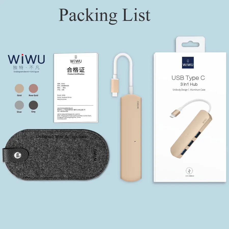 WIWU USB 3.0 Type C for MacBook Hub Thunderbolt USB 3.0 High Speed Transmission USB for MacBook Pro 2016 Adapter Card Reader USB