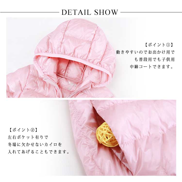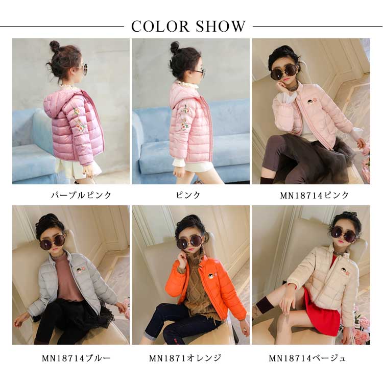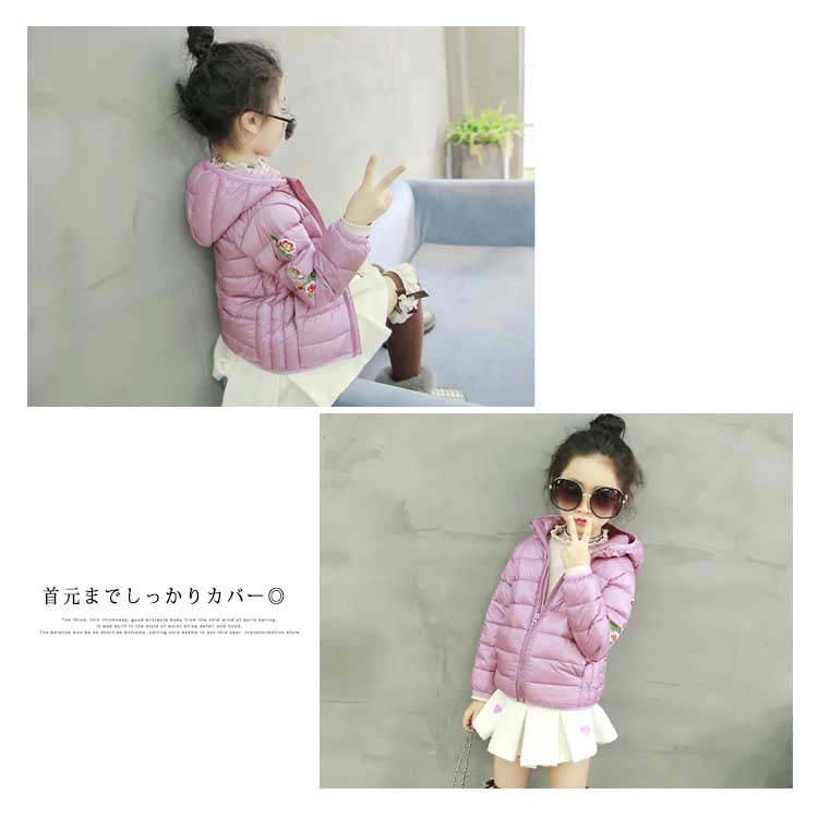 | 軽くて刺繍入りの可愛い中綿コート♪首元までしっかりカバー◎風を通しにくくて暖かい。シンプルで何にでも合うデザインが嬉しいポイント。 | |