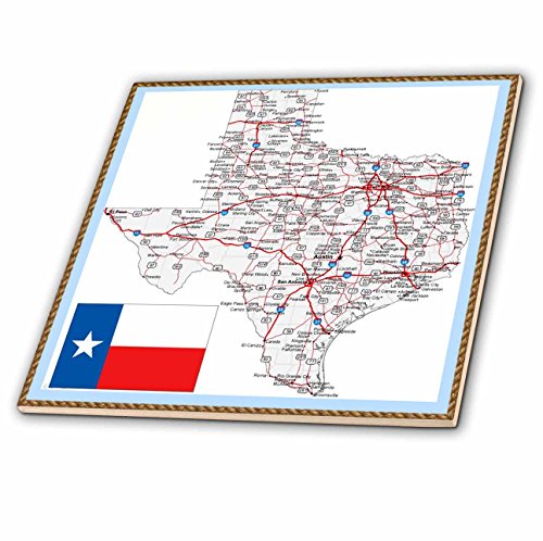 3dRose ct_39026_5 Framed State of Texas with State Flag Glass Tile, 4-Inch