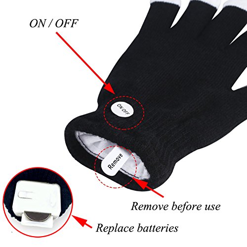 Binding : Apparel Product Description Specifications: [Principle] flash LED light inside the gloves are joined in the movement and luminous LED lights, flashing through the switch control to achieve the effect of cool brightly.? Recommendation: The quality of these is really very nice and they are very easy to work. It suitable anyone that loves to have fun.?The colors are bright and very vivid and the fit of the glove works great on your hand which is a medium sized woman's hand. These are made to even work in cold weather so if you just want fun winter gloves these would also keep you nice and warm. 0