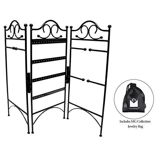 3-Panel Folding Screen Jewelry Hanger, Earrings, Bracelets, Necklaces Organizer Display Stand, Black