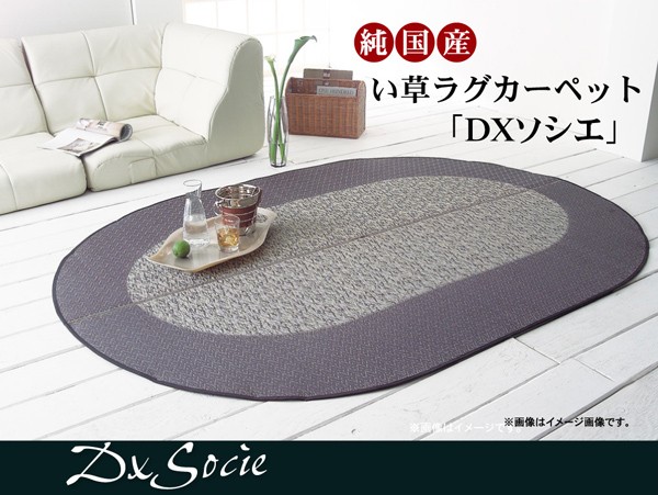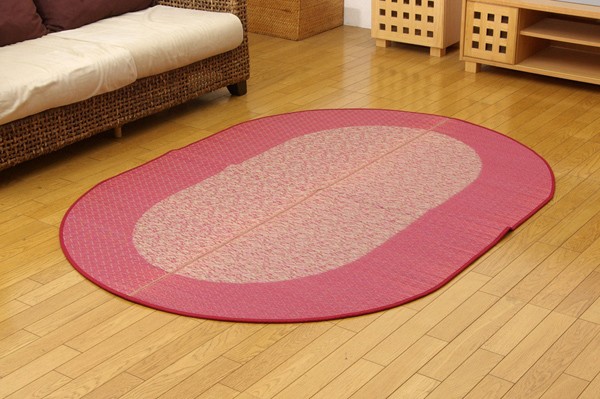 【商品名】純国産/日本製 袋織い草ラグカーペット 『D×ソシエ』 ローズ 約140×200cm楕円(オーバル/楕円形)