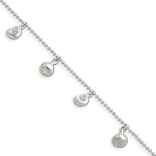 Solid 925 Sterling Silver Polished Sea Shell Anklet 9" - with Secure Lobster Lock Clasp (2mm)