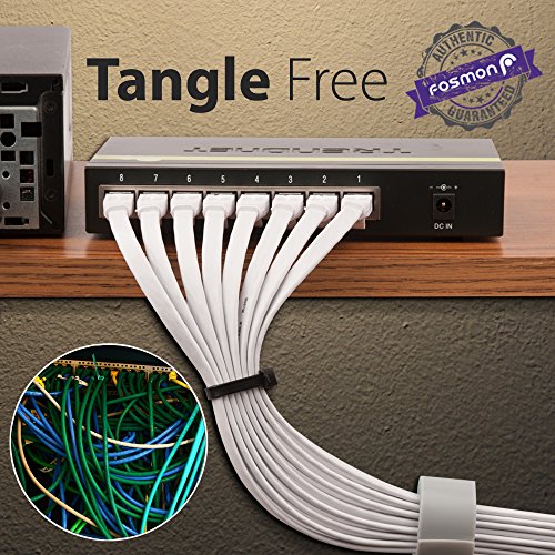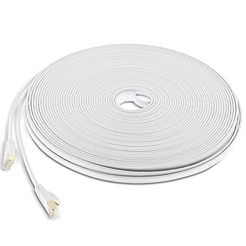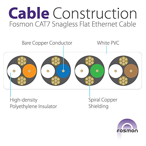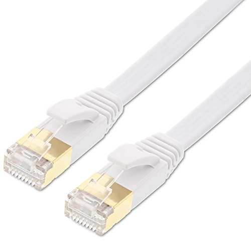 CAT7 Flat Ethernet Cable, Fosmon (White - 100 Feet) CAT7 Snagless RJ45 Ethernet Network Patch Cable [FLAT Tangle Free] - Ultra Speed 10 Gigabit 600Mhz Patch - Modem / Router / LAN / Printer / MAC / Laptop