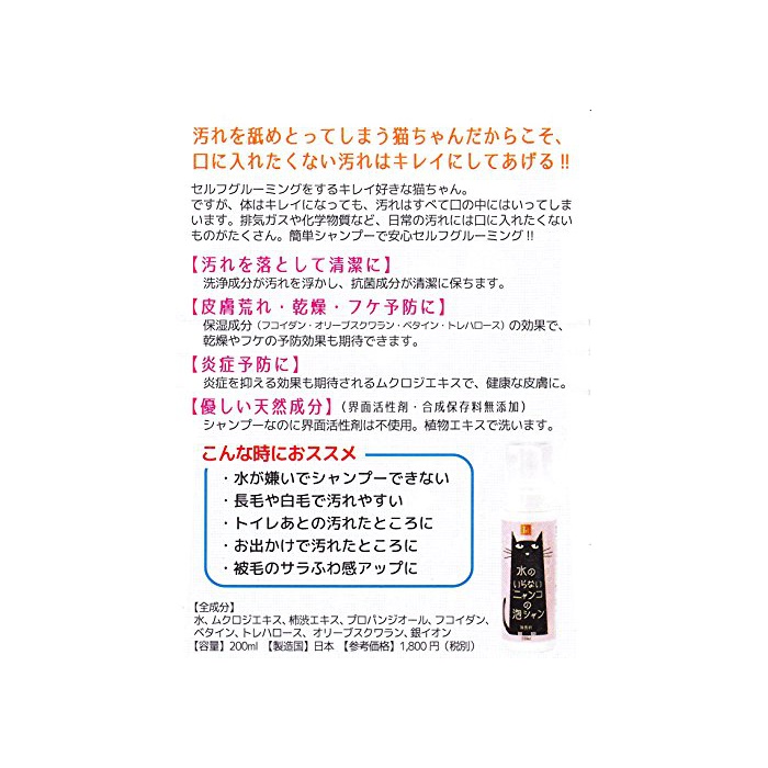 원본상품명:PN 水のいらないニャンコの泡シャン
